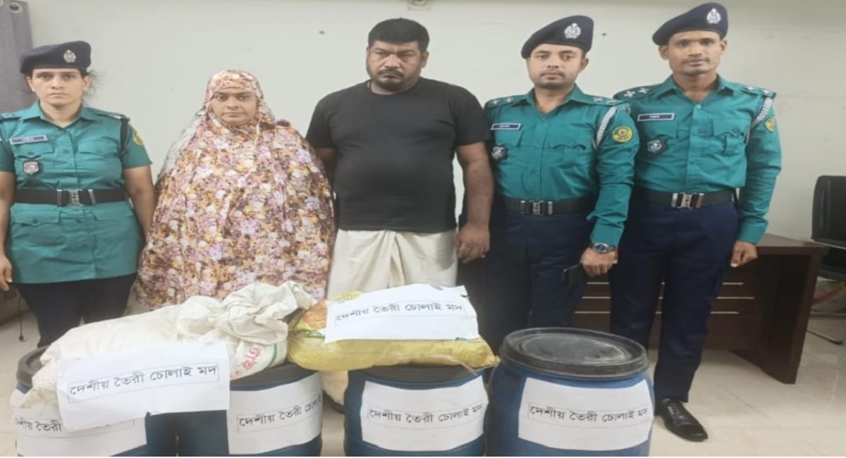 স্বামী-স্ত্রীর মাদক কারবারি, বাসায় অভিযানে মিলে অবৈধ মদ