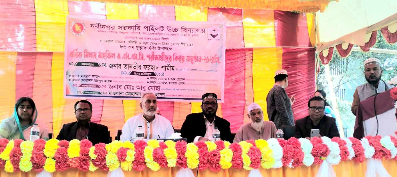 ব্রাহ্মণবাড়িয়ার শতাব্দীপ্রাচীন (১৮৮৬ সালে প্রতিষ্ঠিত) ঐতিহ্যবাহী শিক্ষা প্রতিষ্ঠান নবীনগর সরকারি পাইলট উচ্চ বিদ্যালয়ের এসএসসি ২০২৪ ব্যাচ পরীক্ষার্থীদের বিদায় ও মিলাদ