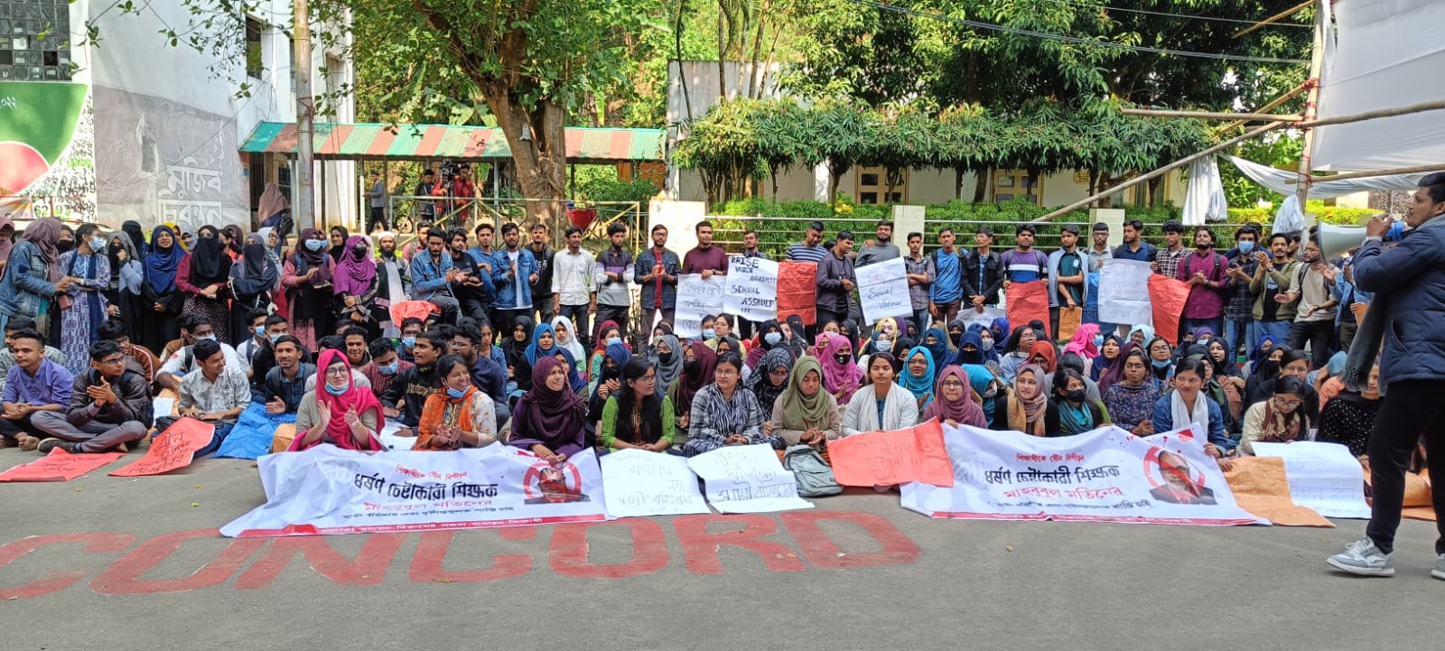 নিজ বিভাগের ছাত্রীর যৌন নিপীড়নের দায়ে অভিযুক্ত চট্টগ্রাম বিশ্ববিদ্যালয়ের (চবি) রসায়ন বিভাগের অধ্যাপক ড. মাহবুবুল মতিনের স্থায়ী বহিষ্কার দাবিতে মানববন্ধন