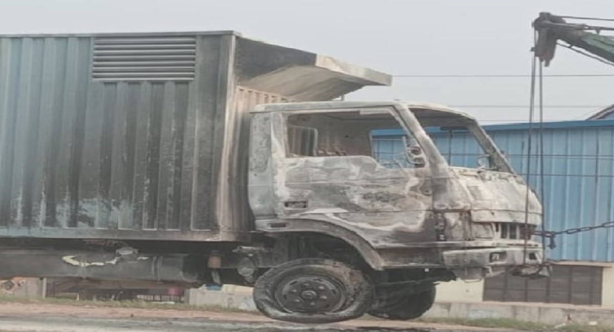 গাজীপুরে কাভার্ডভ্যানে আগুন