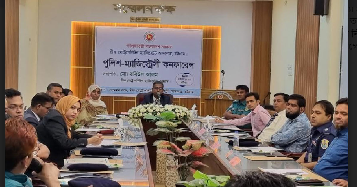 চট্টগ্রাম চীফ মেট্রোপলিটন ম্যাজিস্ট্রেট আদালতের উদ্যোগে শনিবার (৪ নভেম্বর) আদালতের সম্মেলন কক্ষে পুলিশ-ম্যাজিস্ট্রেসী কনফারেন্স অনুষ্ঠিত হয়েছে।বিজ্ঞ চীফ মেট্রোপলিটন ম্যাজিস্ট্রেট জনাব
