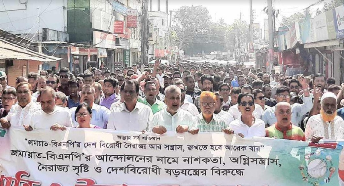 অবরোধের দিতীয় দিনে দফায় দফায় আওয়ামী লীগের মিছিলে রাজপথ প্রকম্পিত