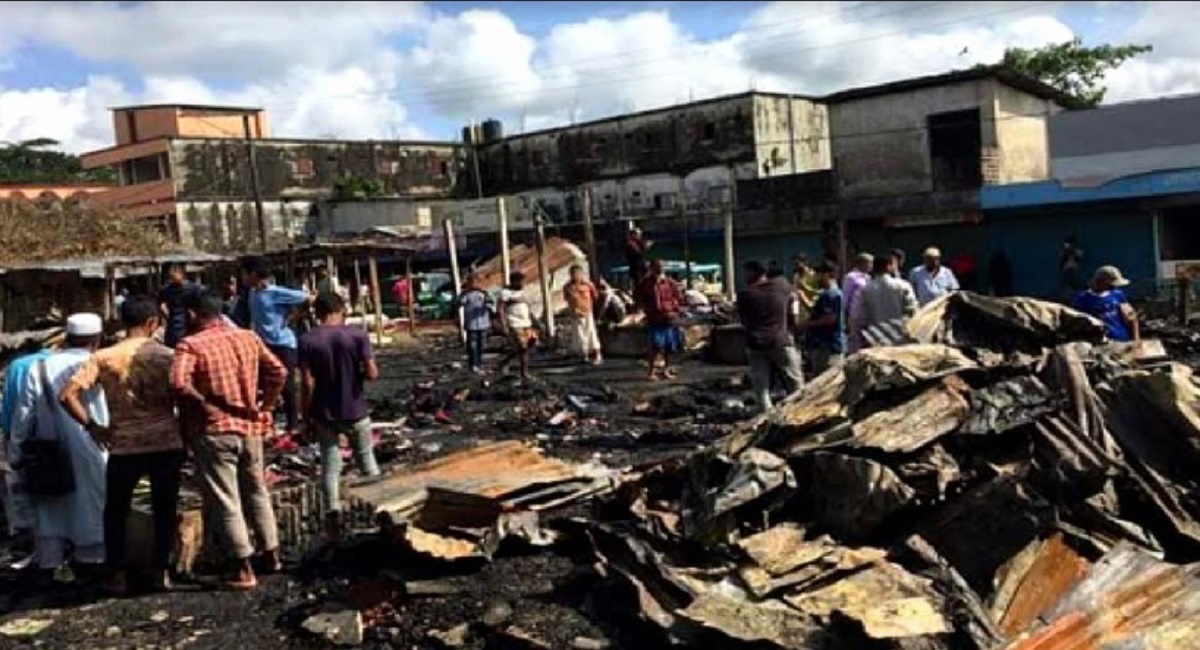 ওসমানীনগরে অগ্নিকান্ডে ২২ দোকান পুড়ে ছাই