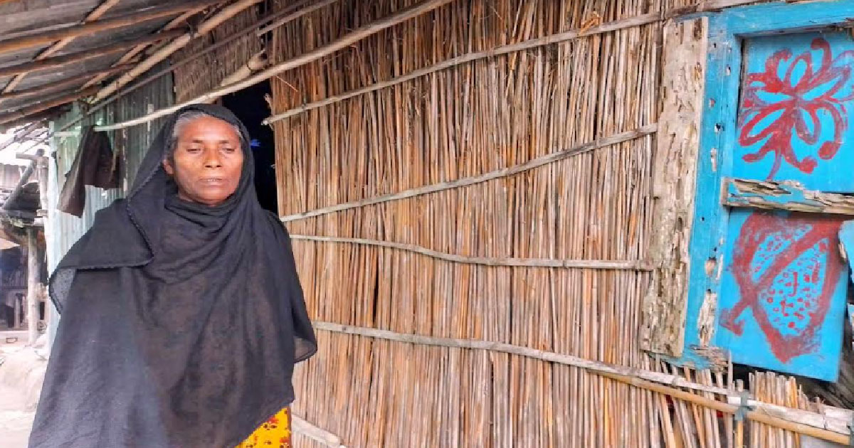 ঘরের চালা দিয়ে বৃষ্টির পানি পড়ে, না ঘুমিয়ে বসে থাকেন বৃদ্ধা রুপজান