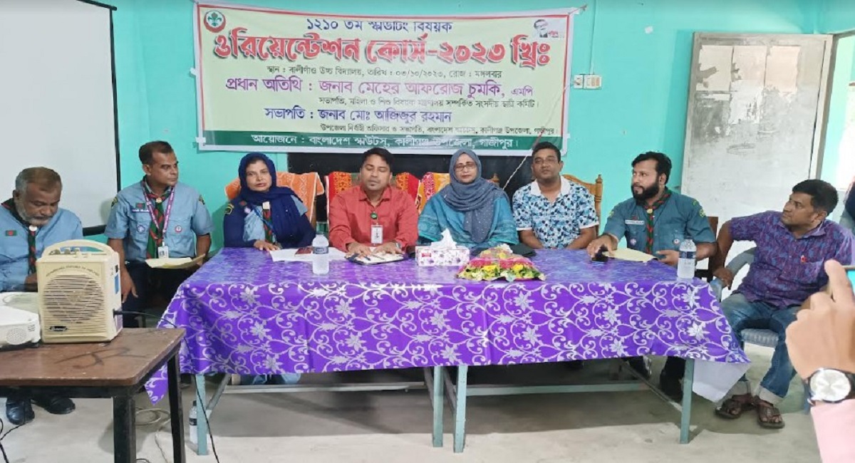 গাজীপুরের কালীগঞ্জে ১২১০তম স্কাউটিং বিষয়ক ওরিয়েন্টেশন কোর্স অনুষ্ঠিত হয়েছে। মঙ্গলবার (০৩ অক্টোবর) সকাল থেকে শুরু হওয়া এ ওরিয়েন্টেশন কোর্স উপজেলার