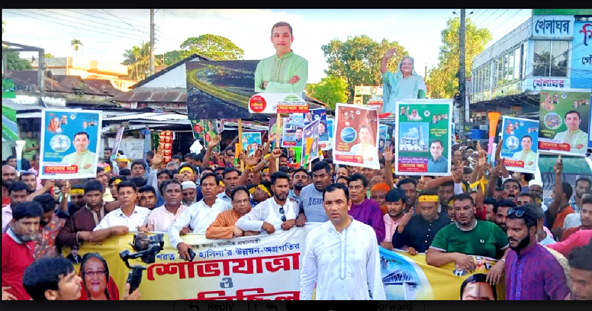 গৌরীপুরে শেখ হাসিনার উন্নয়ন ও অগ্রগতি প্রচারণার গণমিছিল অনুষ্ঠিত