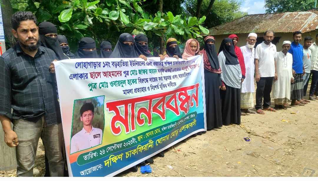 লোহাগাড়ায় কলেজ শিক্ষার্থী ওবায়দুল হকের মুক্তির দাবীতে এলাকাবাসীর মানববন্ধন