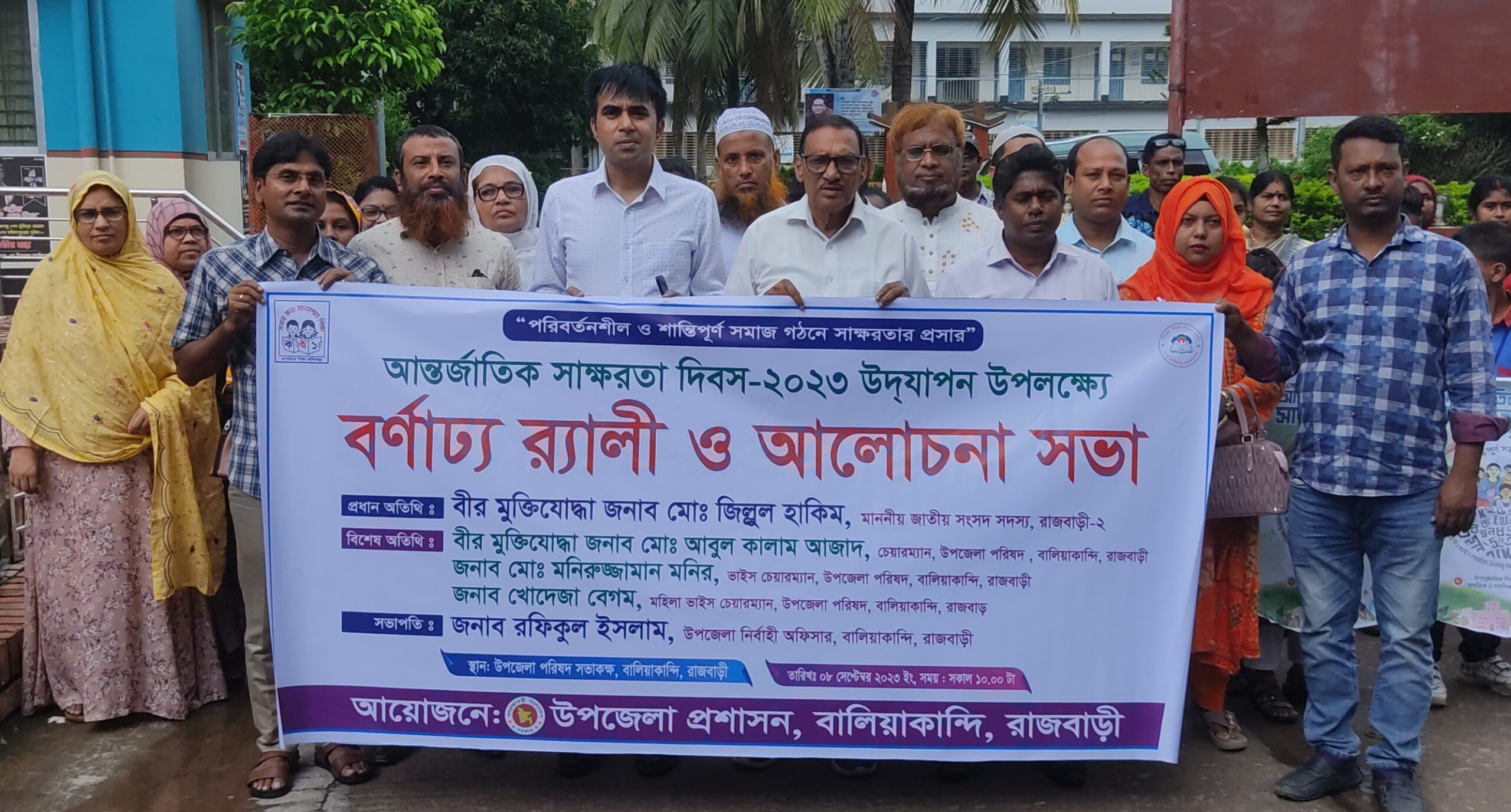 পরিবর্তনশীল ও শান্তিপূর্ণ সমাজ গঠনে সাক্ষরতার প্রসার এইপ্রতিপাদ্য নিয়ে রাজবাড়ীর বালিয়াকান্দিতে উপজেলা প্রশাসনের আয়োজনে আন্তর্জাতিক সাক্ষরতা দিবস উপলক্ষে বর্ণাঢ্য র