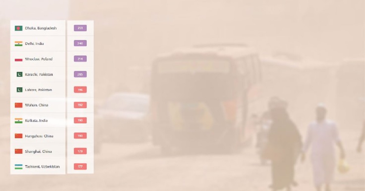 বিশ্বের দূষিত শহরের তালিকায় আজ বৃহস্পতিবার ঢাকা শীর্ষে উঠে এসেছে। বেলা সোয়া ১১টায় এয়ার কোয়ালিটি ইনডেক্স (একিউআই) স্কোর ২৫১ নিয়ে