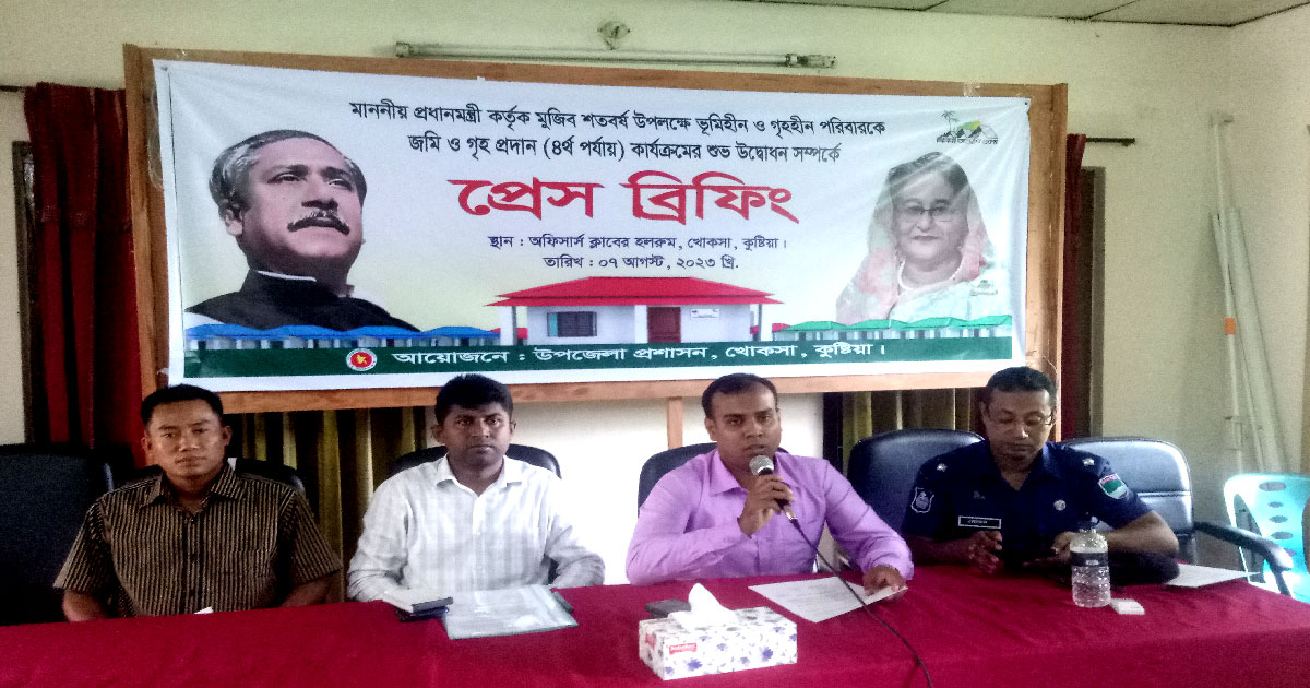কুষ্টিয়া খোকসা আগামী ৯ আগস্ট সকাল ৯ টা ৩০ শে প্রধানমন্ত্রী খোকসা উপজেলা ১৬০টি ভূমিহীন পরিবারের মাঝে ঘর প্রদানের মধ্য