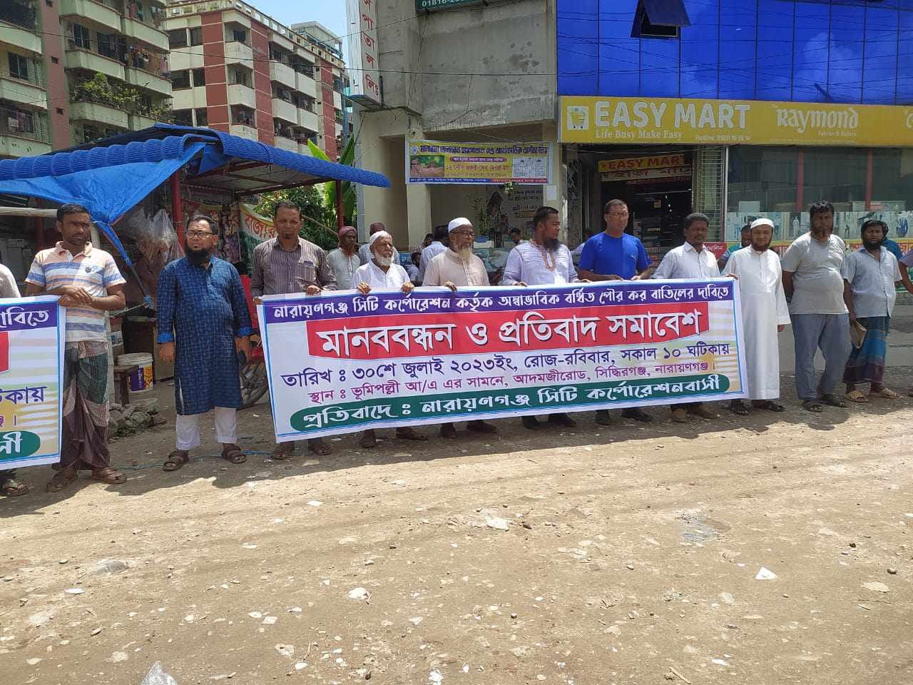 নাসিকের বর্ধিত কর বাতিলের দাবিতে সিদ্ধিরগঞ্জে মানববন্ধন