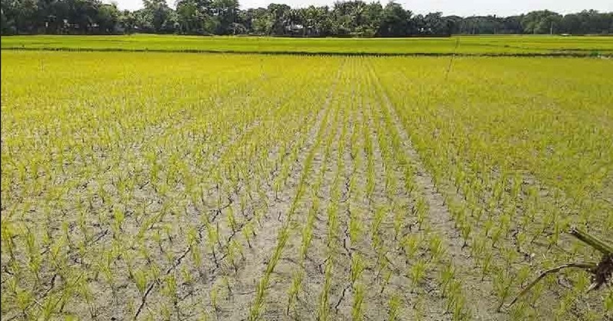 শ্রাবণ মাসেও বৃষ্টির দেখা নেই। ভরা বর্ষাকালে প্রখর রোদে জমি ফেটে চৌচির। সেচ দিয়ে আমন চাষাবাদে উৎপাদন খরচ নিয়ে শঙ্কায়