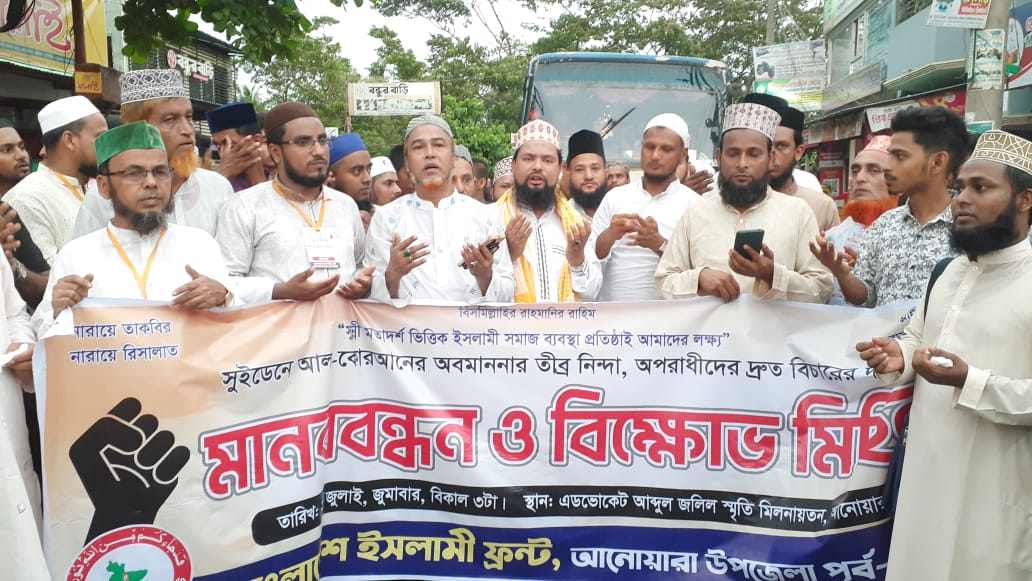 সুইডেনে আল-কোরআনের অবমাননার তীব্র নিন্দা, অপরাধীদের দ্রুত বিচারের দাবিতে বাংলাদেশ ইসলামী ফ্রন্ট আনোয়ারা শাখার উদ্যোগে মানববন্ধন ও বিক্ষোভ মিছিল অনুষ্ঠিত