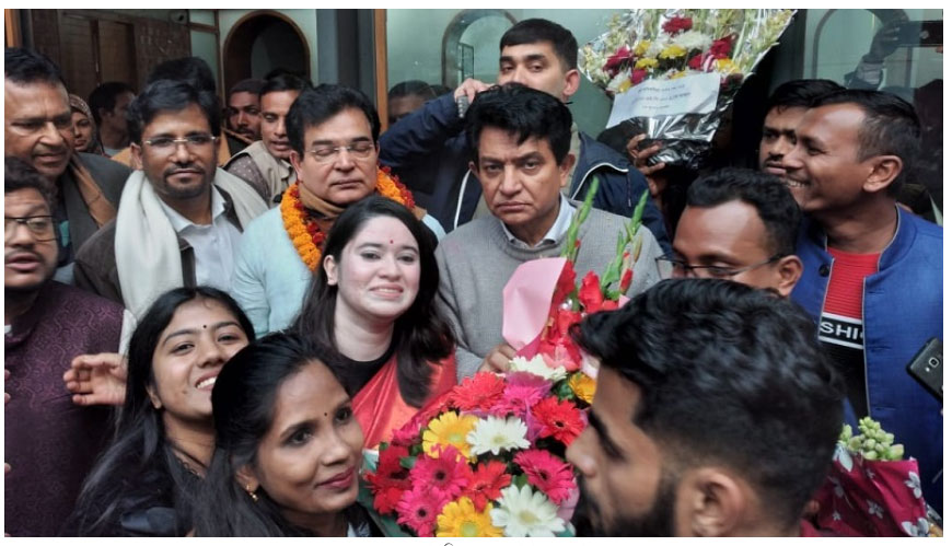 এ. কে. আজাদের বাড়িতে জনস্রোত, ফুলেল শুভেচ্ছা