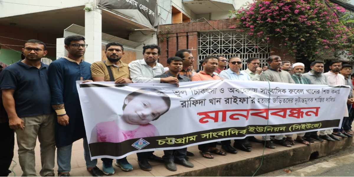 চট্টগ্রাম সাংবাদিক ইউনিয়নের (সিইউজে) কার্যনির্বাহী কমিটির সিনিয়র সহ-সভাপতি মোহাম্মদ রুবেল খানের আড়াই বছরের শিশু কন্যা রাফিদা খান রাইফা হত্যা মামলার