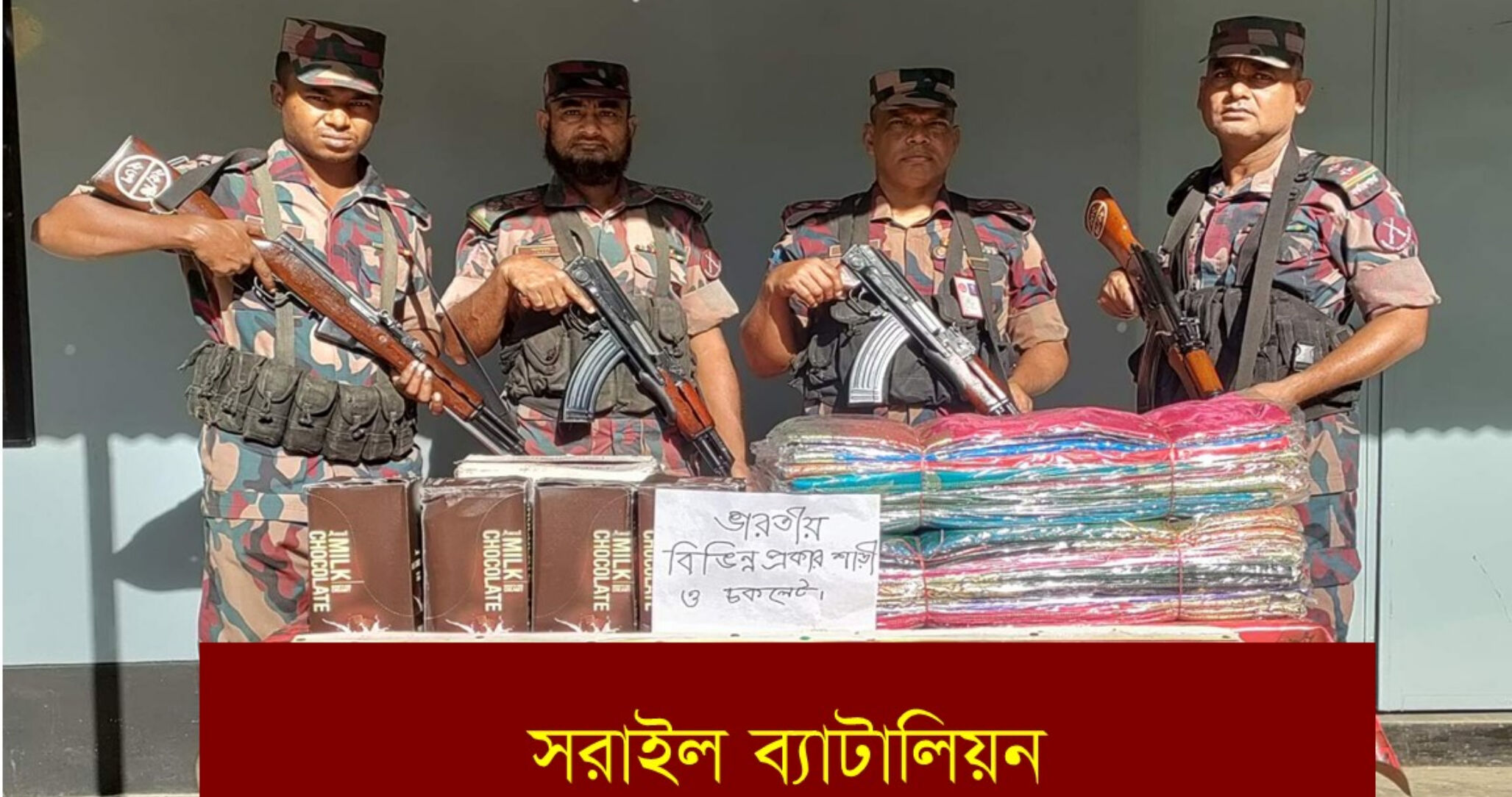ব্রাহ্মণবাড়িয়া সরাইল ব্যাটালিয়ন ২৫ বিজিবির একটি চৌকস দল চোরাচালান বিরোধী অভিযান পরিচালনা করে ভারতীয় বিভিন্ন প্রকার শাড়ি এবং চকলেট আটক