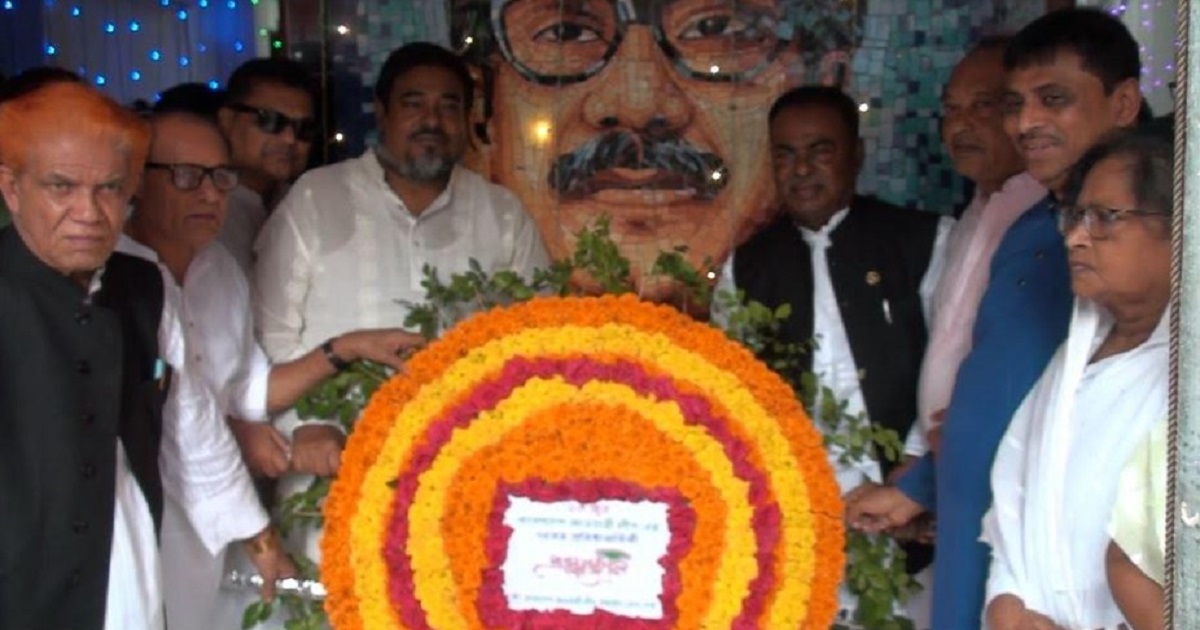 টাঙ্গাইলে জাতির পিতা বঙ্গবন্ধু শেখ মুজিবুর রহমানের প্রতিকৃতিতে ফুলেল শ্রদ্ধাঞ্জলি প্রদানের মধ্য দিয়ে বাংলাদেশ আওয়ামী লীগের ৭৪তম প্রতিষ্ঠাবার্ষিকী কর্মসূচি পালন