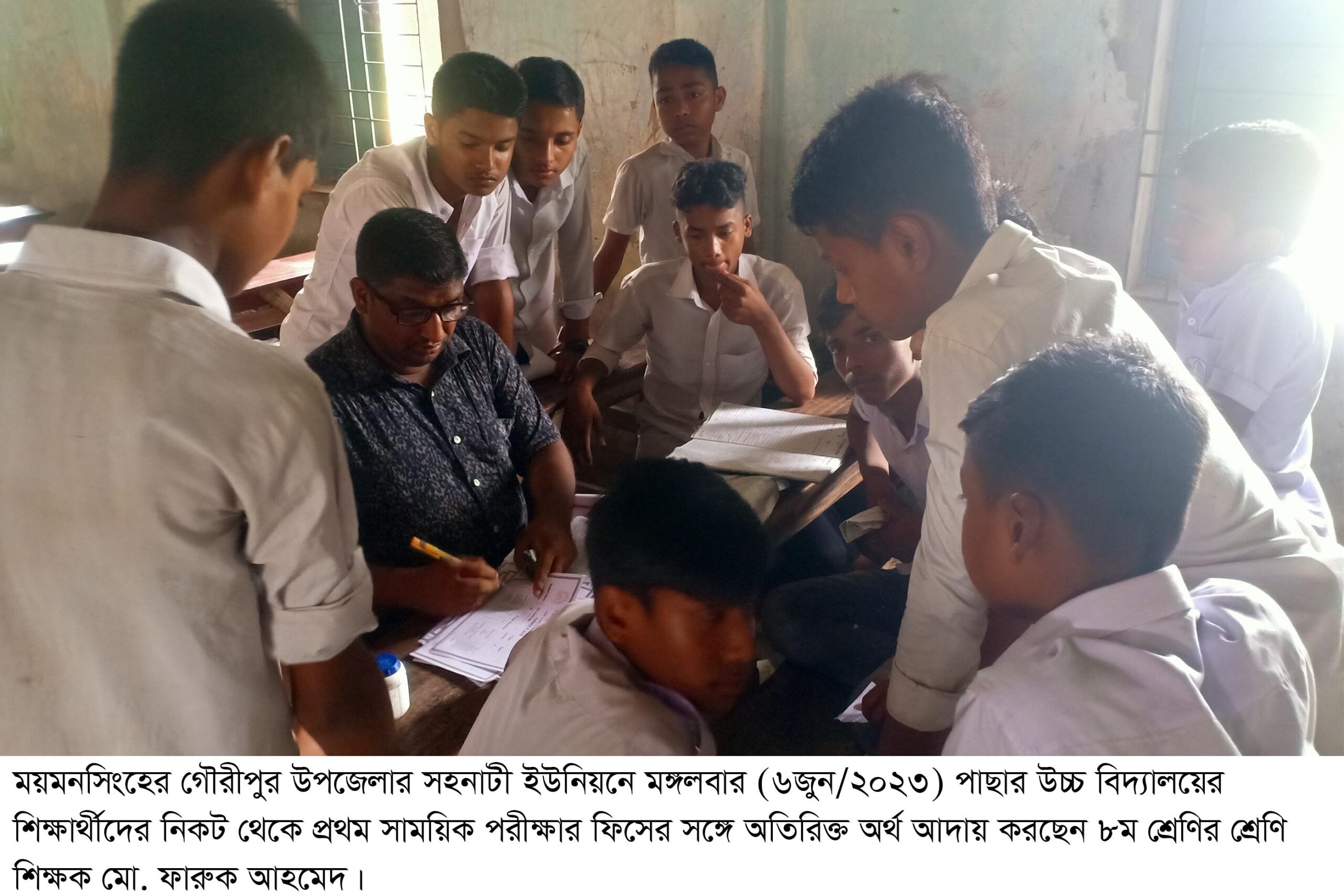 ময়মনসিংহের গৌরীপুর উপজেলার সহনাটী ইউনিয়নের পাছার উচ্চ বিদ্যালয়ের প্রথম সাময়িক পরীক্ষায় শিক্ষার্থীদের নিকট থেকে ফিসের সঙ্গে অতিরিক্ত অর্থ আদায়ের অভিযোগ