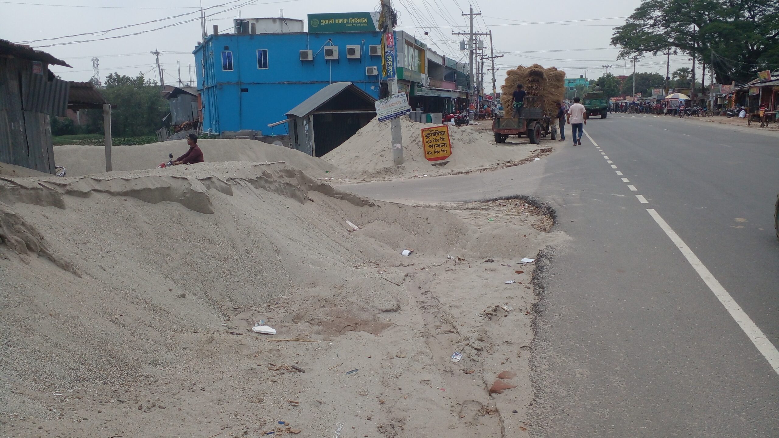 মহাসড়ক দখল করে রমরমা বালির ব্যবসা : নির্বাক প্রশাসন