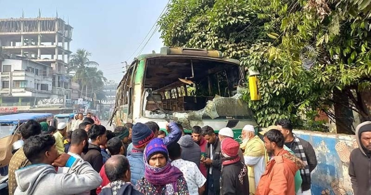 চাঁদপুরে দাঁড়িয়ে থাকা বাসে আগুন, চালক-হেলপার আহত