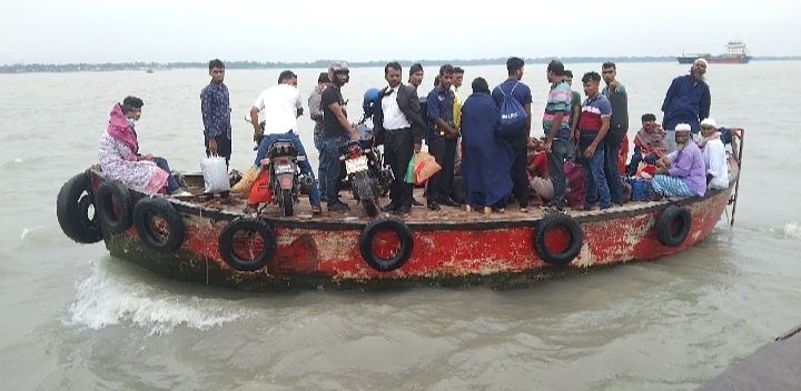 বরগুনায় খেয়াঘাটে অতিরিক্ত ভাড়া নেয়ার ভোগান্তিতে যাত্রীরা