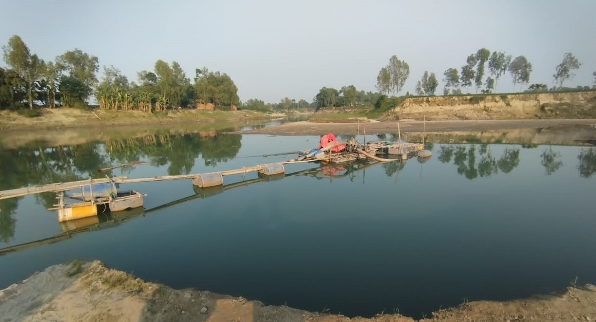 শেরপুরে বাঙালি নদীতে অভিযান চালিয়ে বালু উত্তোলনের মেশিন জব্দ
