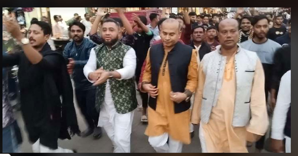 নৌকার সমর্থনে রায়পুর পৌর তাতীলীগের বিশাল মিছিল