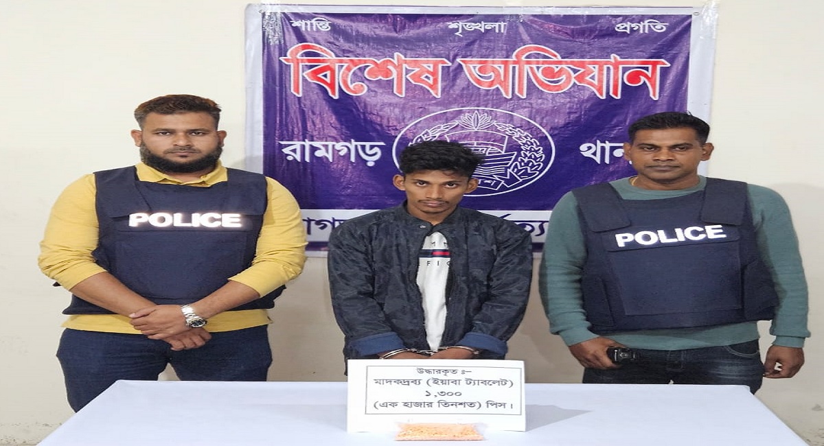 রামগড় পুলিশের বিশেষ অভিযানে ১৩০০ পিচ ইয়াবাসহ মাদক কারবারি গ্রেফতার