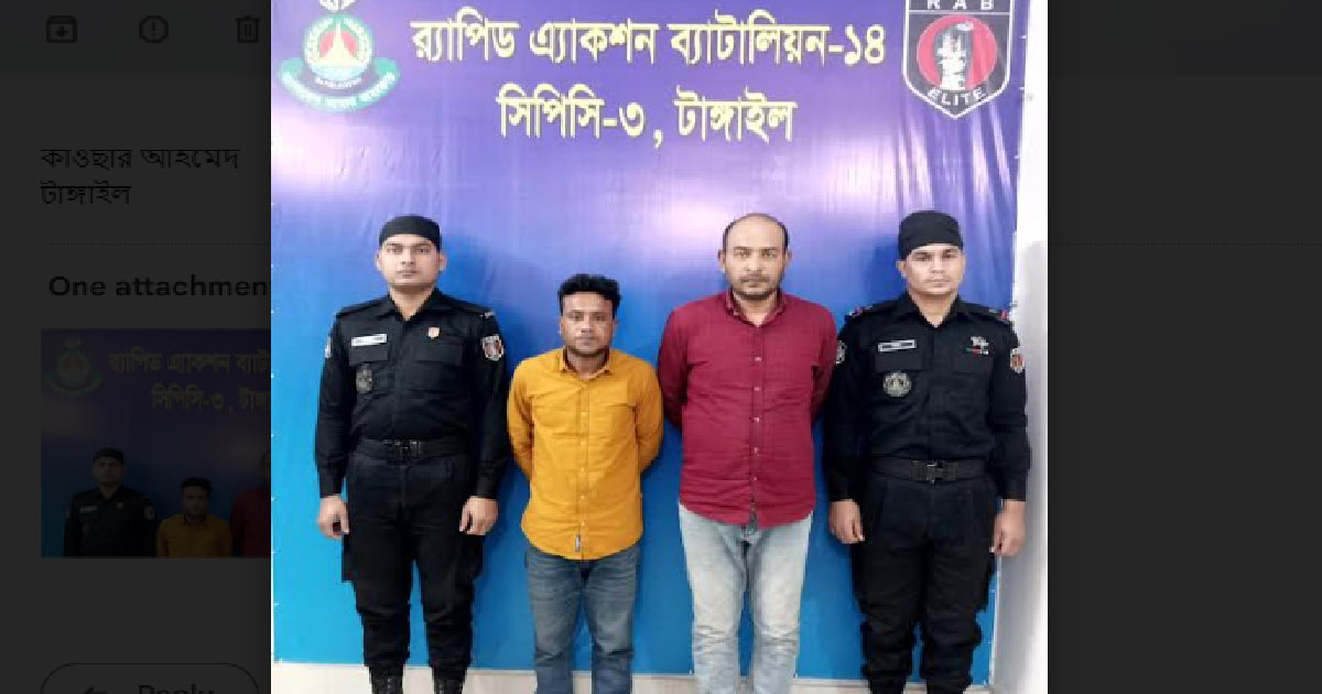 টাঙ্গাইলে অস্ত্রধারী সন্ত্রাসীদের অতর্কিত গোলাগুলিতে তিন জন গুলিবিদ্ধ হওয়ার ঘটনায় প্রধান আসামিসহ দুই জনকে গ্রেপ্তার করেছে র্যাব। সদর দপ্তরের গোয়েন্দা