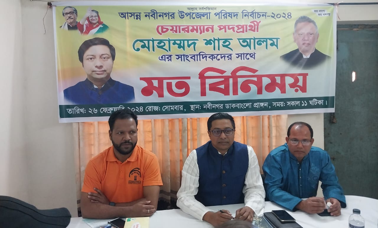 নবীনগর উপজেলায় কর্মরত ইলেক্ট্রনিক ও প্রিন্ট মিডিয়ার সাংবাদিকদের সঙ্গে মতবিনিময় সভা করেছেন আসন্ন উপজেলার চেয়ারম্যান প্রার্থী মোহাম্মদ শাহ আলম। তিনি