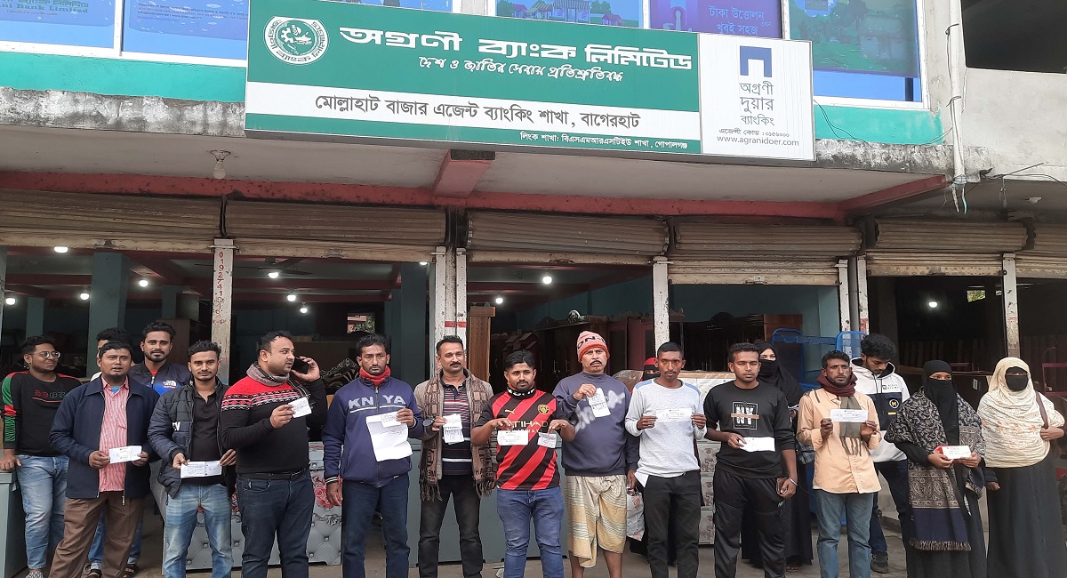 বাগেরহাটে গ্রাহকদের প্রায় দুই কোটি টাকা নিয়ে পালিয়েছেন অগ্রনী ব্যাংক লি. মোল্লাহাট বাজার এজেন্ট ব্যাংকিং উদ্যোক্তা প্রবীর রাহা। উপজেলা সদরের