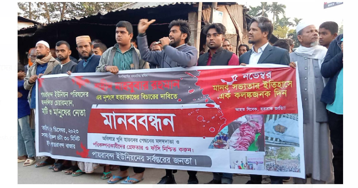 ইউপি চেয়ারম্যানের হত্যাকারীদের গ্রেফতারের দাবিতে মানববন্ধন