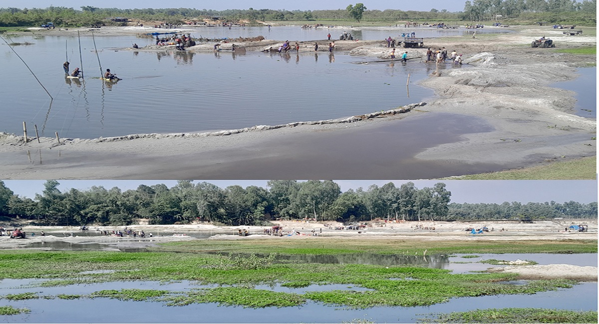 তেঁতুলিয়ায় ড্রেজারের পর ট্রাক্টর দিয়ে ডাহুক নদীতে পাথর উত্তোলন