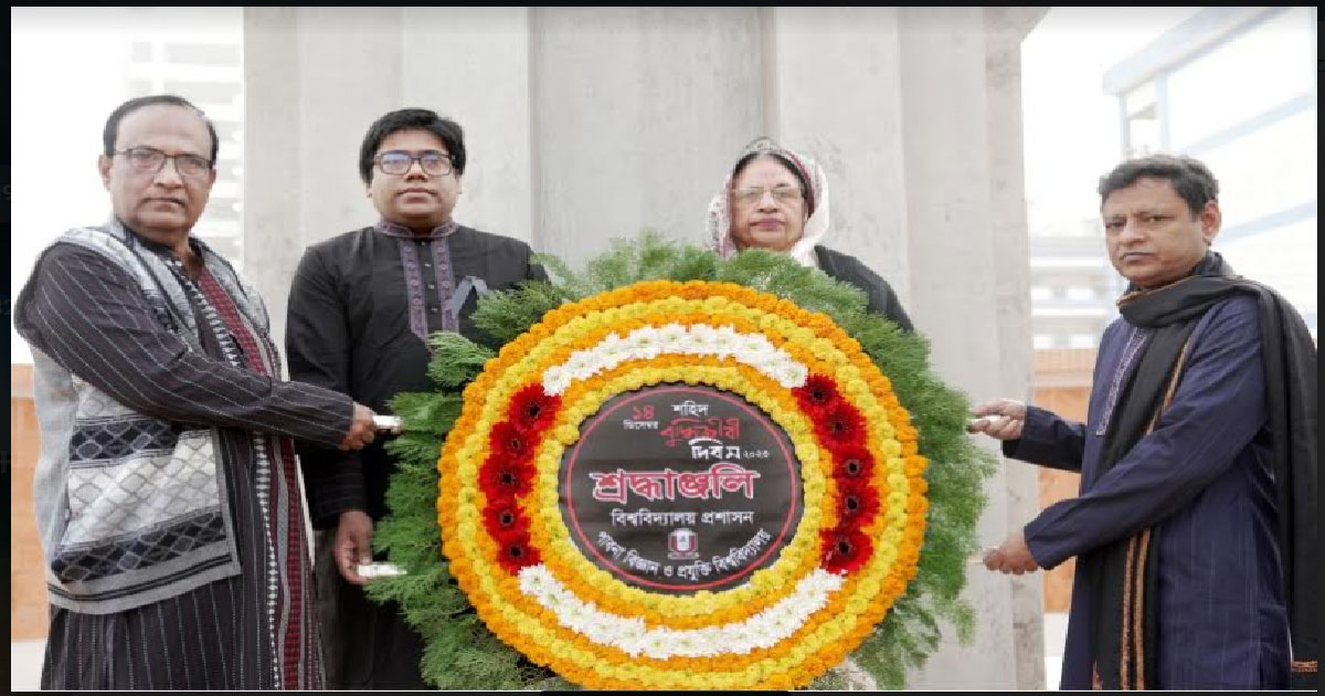 যথাযথ মর্যাদায় পাবনা বিজ্ঞান ও প্রযুক্তি বিশ্ববিদ্যালয়ে শহিদ বুদ্ধিজীবী দিবস পালন করা হয়েছে। এ উপলক্ষ্যে বৃহস্পতিবার (১৪ ডিসেম্বর) সকাল ১০টায়