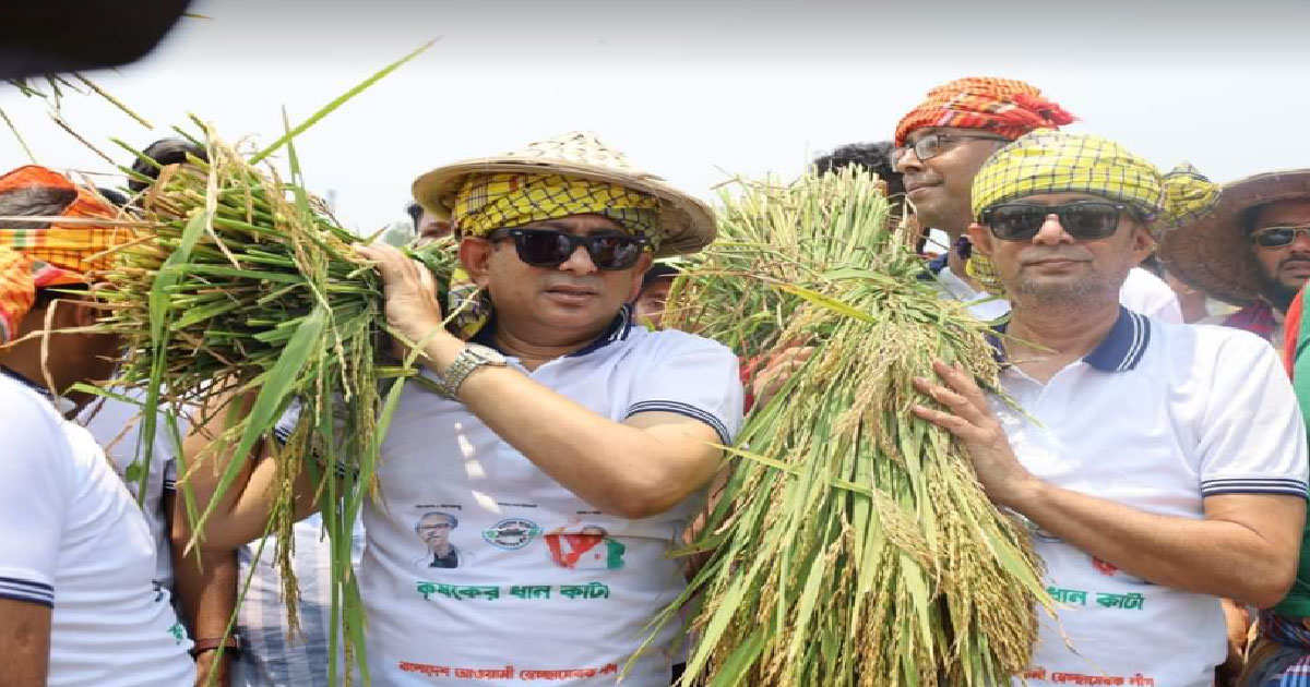 কৃষকের বোরো ধান কেটে দিলেন স্বেচ্ছাসেবক লীগ