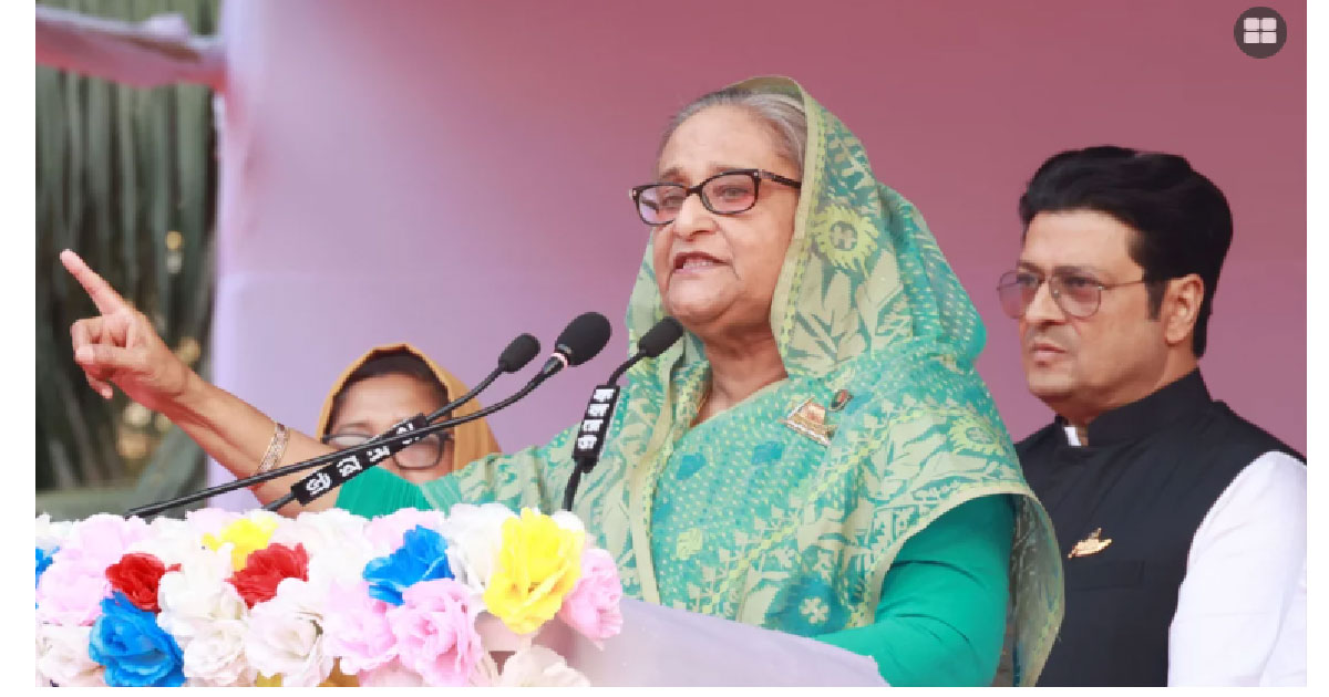 কলাবাগান মাঠে জনসভায় যোগ দিয়েছেন শেখ হাসিনা