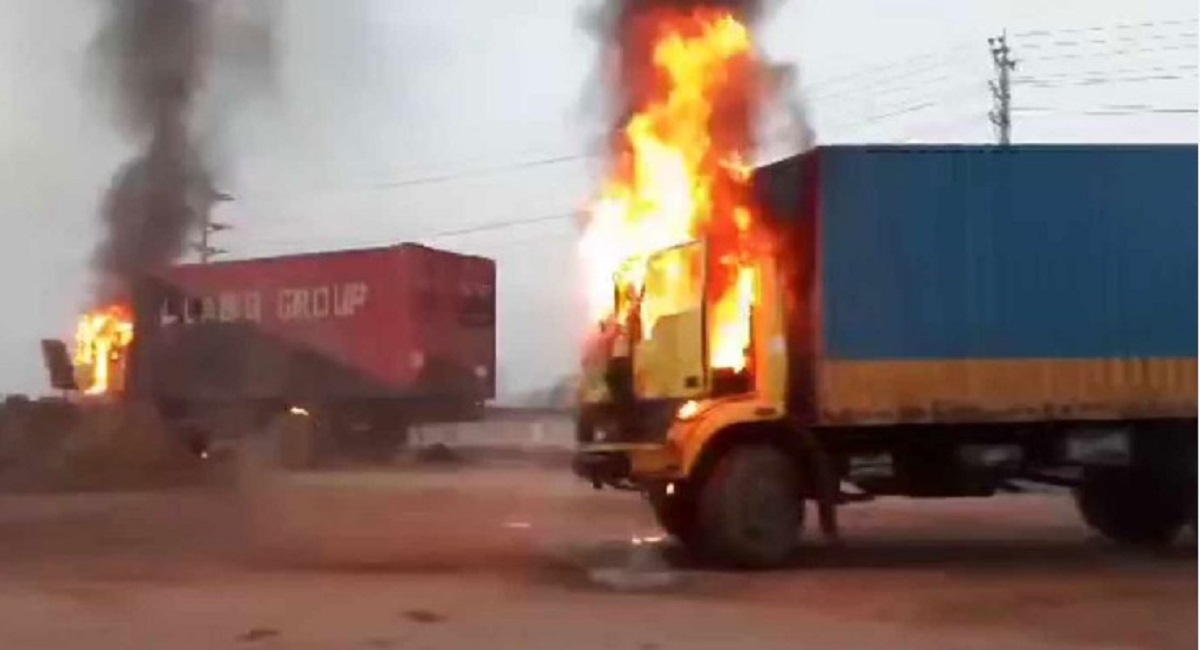 গাজীপুরে ককটেল ফাটিয়ে দুটি কাভার্ড ভ্যানে আগুন