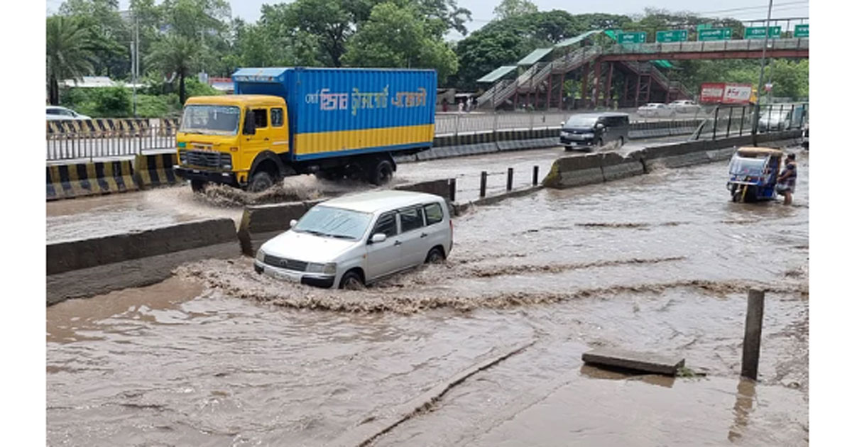 বৃষ্টিতে ঢাকা-চট্টগ্রাম মহাসড়কের নারায়ণগঞ্জের সোনারগাঁ উপজেলার মেঘনা সেতুর টোলপ্লাজার দুটি লেনে আজ শনিবার সকালে হাঁটু পর্যন্ত পানি জমে যায়। পানির