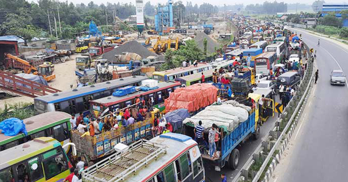 ঢাকা-চট্টগ্রাম মহাসড়কে তীব্র যানজটে দুর্ভোগে যাত্রীরা