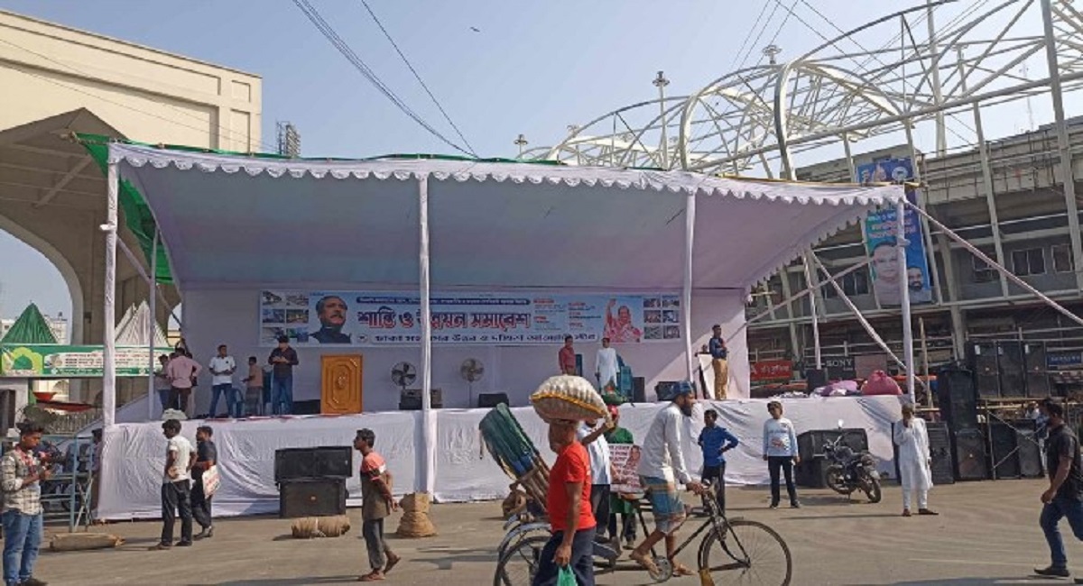 বায়তুল মোকাররমের দক্ষিণ গেটে প্রস্তুত আওয়ামী লীগের মঞ্চ