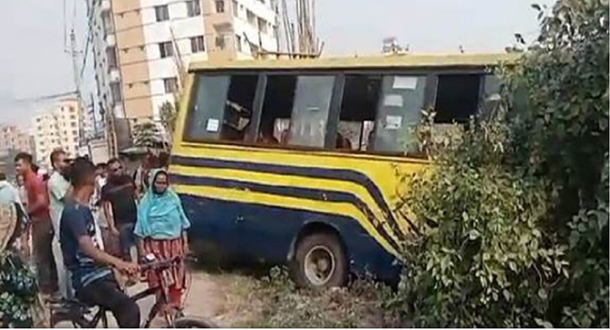রাজধানীর বনশ্রীতে বাসে আগুন, চালক দগ্ধ
