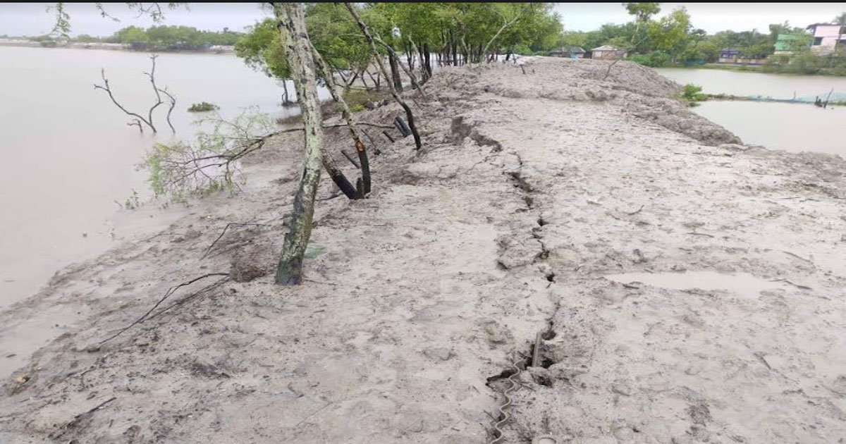 অতিরিক্ত বৃষ্টি ও নদীর পানির জোয়ারে বেড়িবাঁধে ফাটল, আতঙ্কে এলাকাবাসী