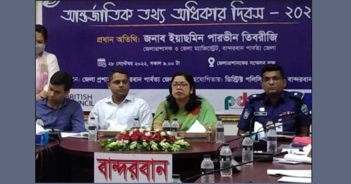 তথ্য প্রযুক্তির যুগে জনগণের তথ্য অধিকার নিশ্চিত হোক’— এই প্রতিপাদ্যকে সামনে রেখে বান্দরবানে পালিত হয়েছে আন্তর্জাতিক তথ্য অধিকার দিবস। বুধবার