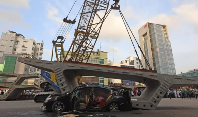 রাজধানীর উত্তরায় নির্মাণাধীন বাস র্যাপিড ট্রানজিট (বিআরটি) প্রকল্পে ক্রেন থেকে গার্ডার পড়ে প্রাইভেটকারকে চাপা দিলে ঘটনাস্থলেই একই পরিবারের ৫ জনের