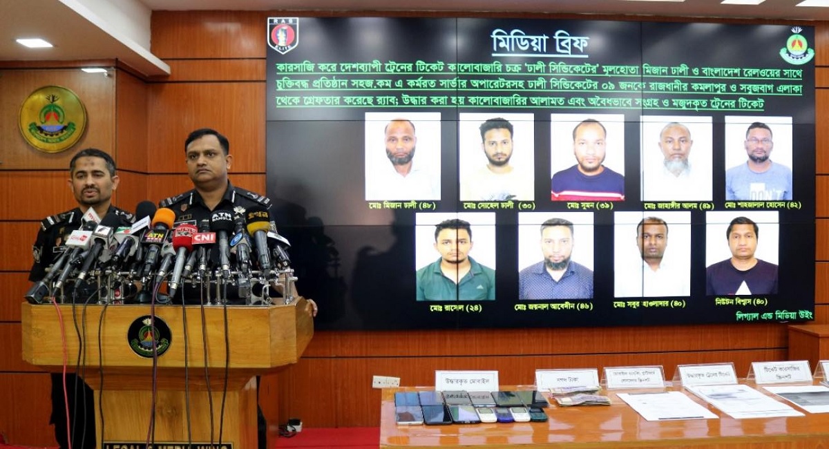 ট্রেনের টিকেট কালোবাজারি ‘ঢালী সিন্ডিকেটের’মূলহোতা মিজানসহ ৯ জনকে গ্রেফতার করেছে র্যাব-৩