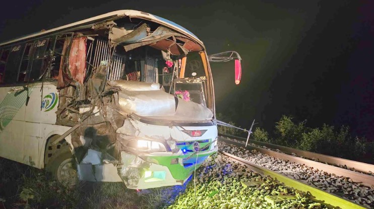ট্রাকের সঙ্গে সংঘর্ষ, রেললাইনের কাছে এসে আটকে গেল বাস