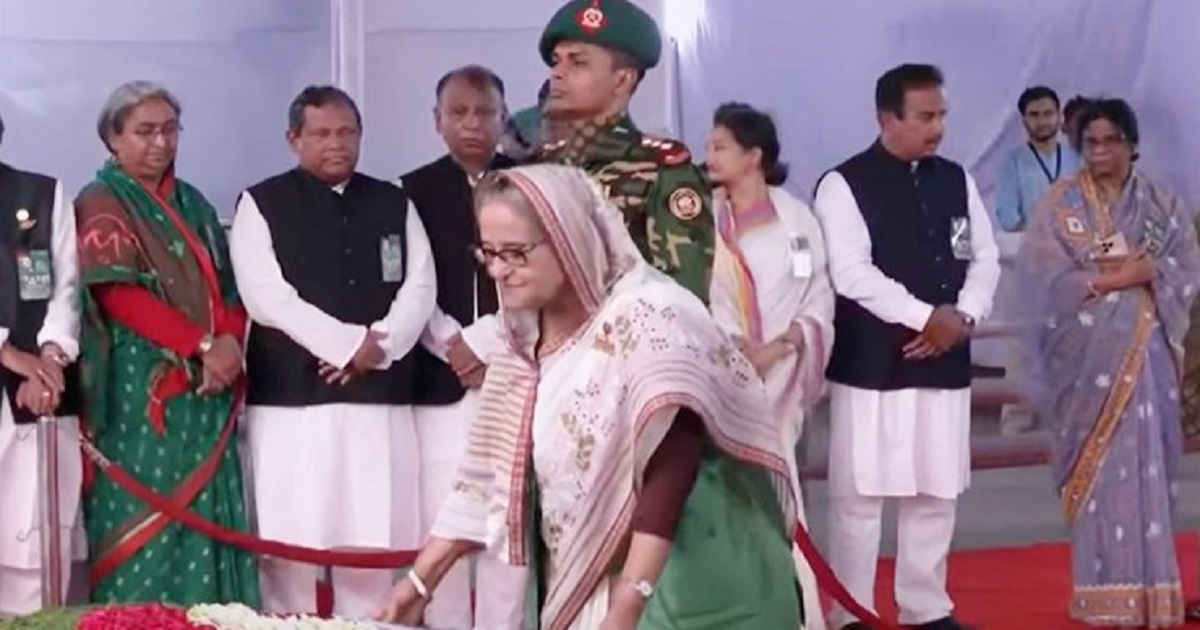 মুজিবনগর দিবসে বঙ্গবন্ধুর প্রতিকৃতিতে প্রধানমন্ত্রীর শ্রদ্ধা