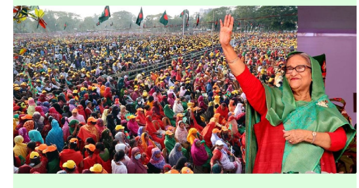 কলাবাগান মাঠে জনসভায় যোগ দিয়েছেন শেখ হাসিনা