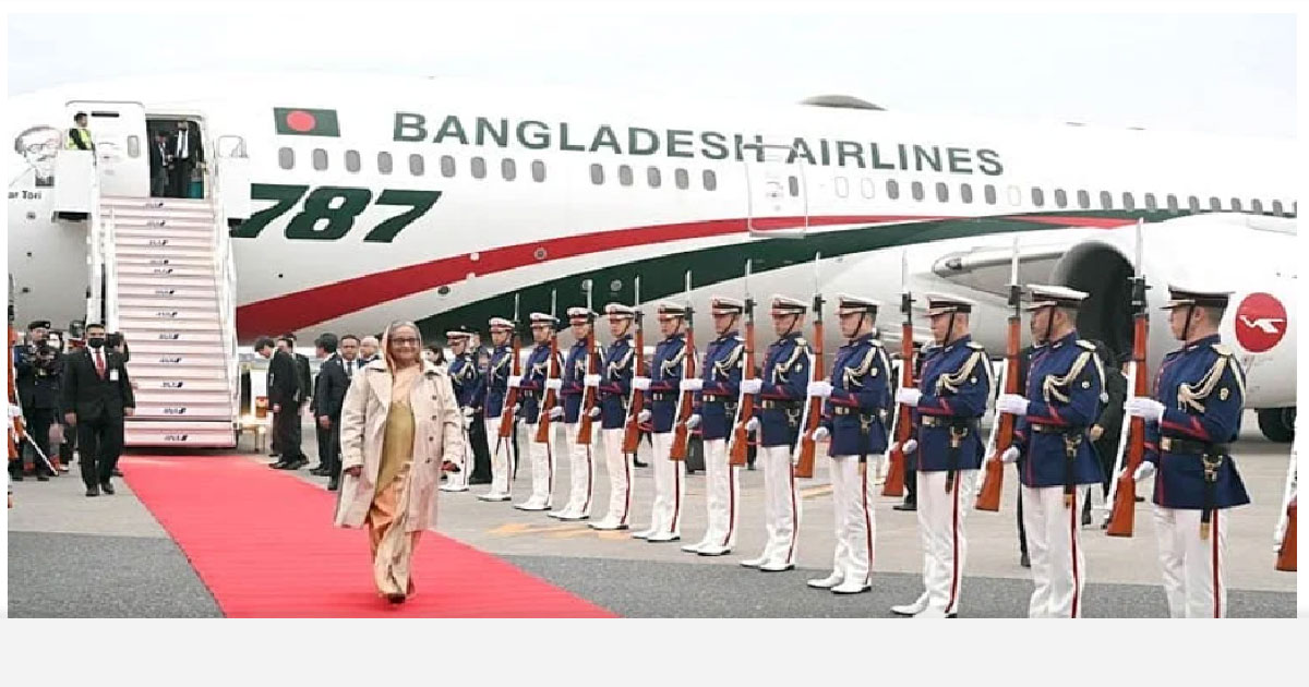 জাপানে প্রধানমন্ত্রী শেখ হাসিনাকে লালগালিচা সংবর্ধনা দেওয়া হয়েছে। জাপানের প্রধানমন্ত্রী ফুমিও কিশিদার আমন্ত্রণে চার দিনের সফরে আজ মঙ্গলবার টোকিওতে পৌঁছান