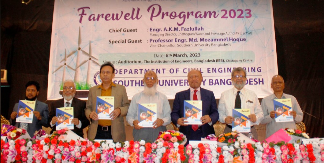 সাউদার্ন ইউনিভার্সিটি বাংলাদেশ’র সিভিল ইঞ্জিনিয়ারিং(পুরকৌশল) বিভাগের গ্রাজুয়েট শিক্ষার্থীদের বিদায় অনুষ্ঠান ৬মার্চ সোমবার সন্ধ্যায় চট্টগ্রাম ইঞ্জিনিয়ারস ইনস্টিটিউট’র(আইইবি) অডিটরিয়ামে অনুষ্ঠিত হয়। বিজ্ঞান